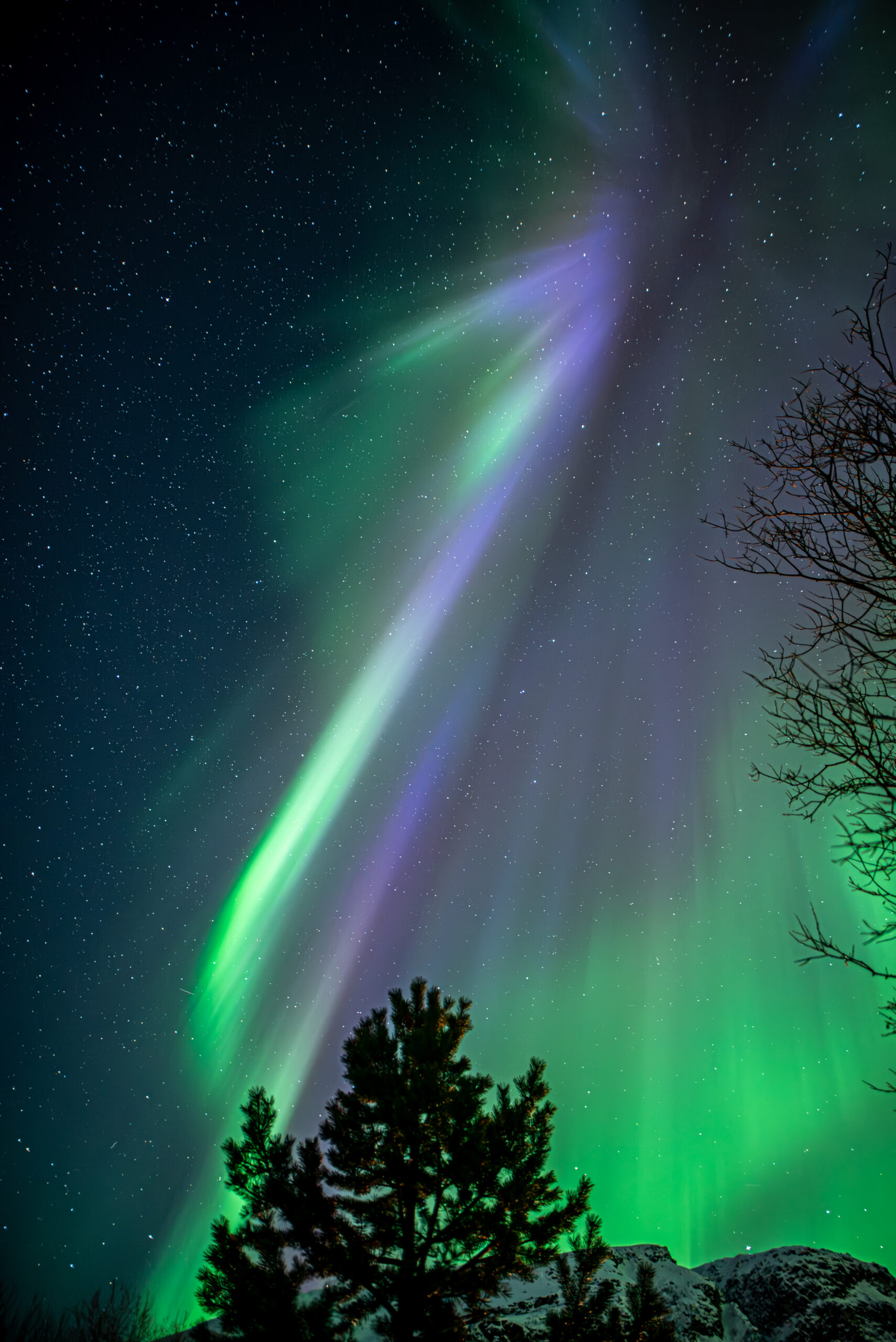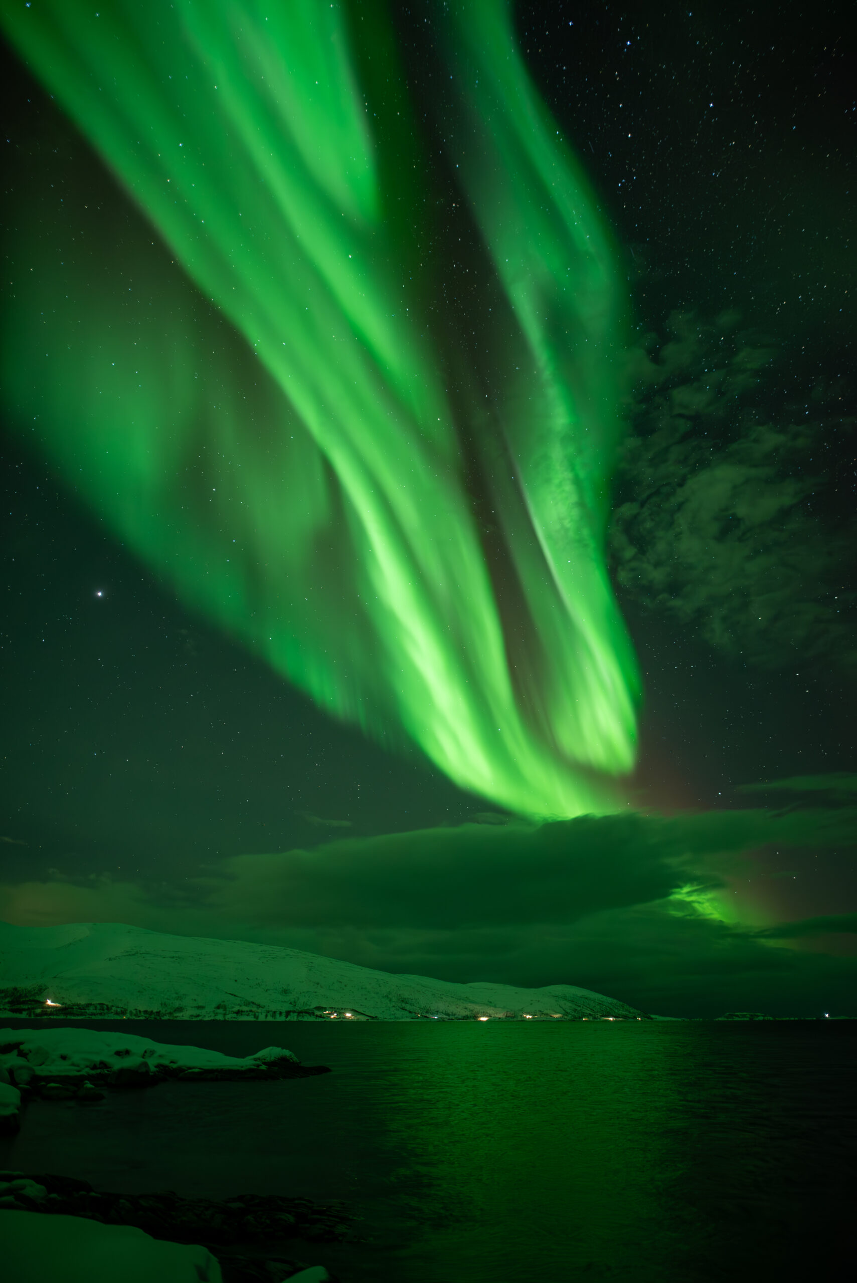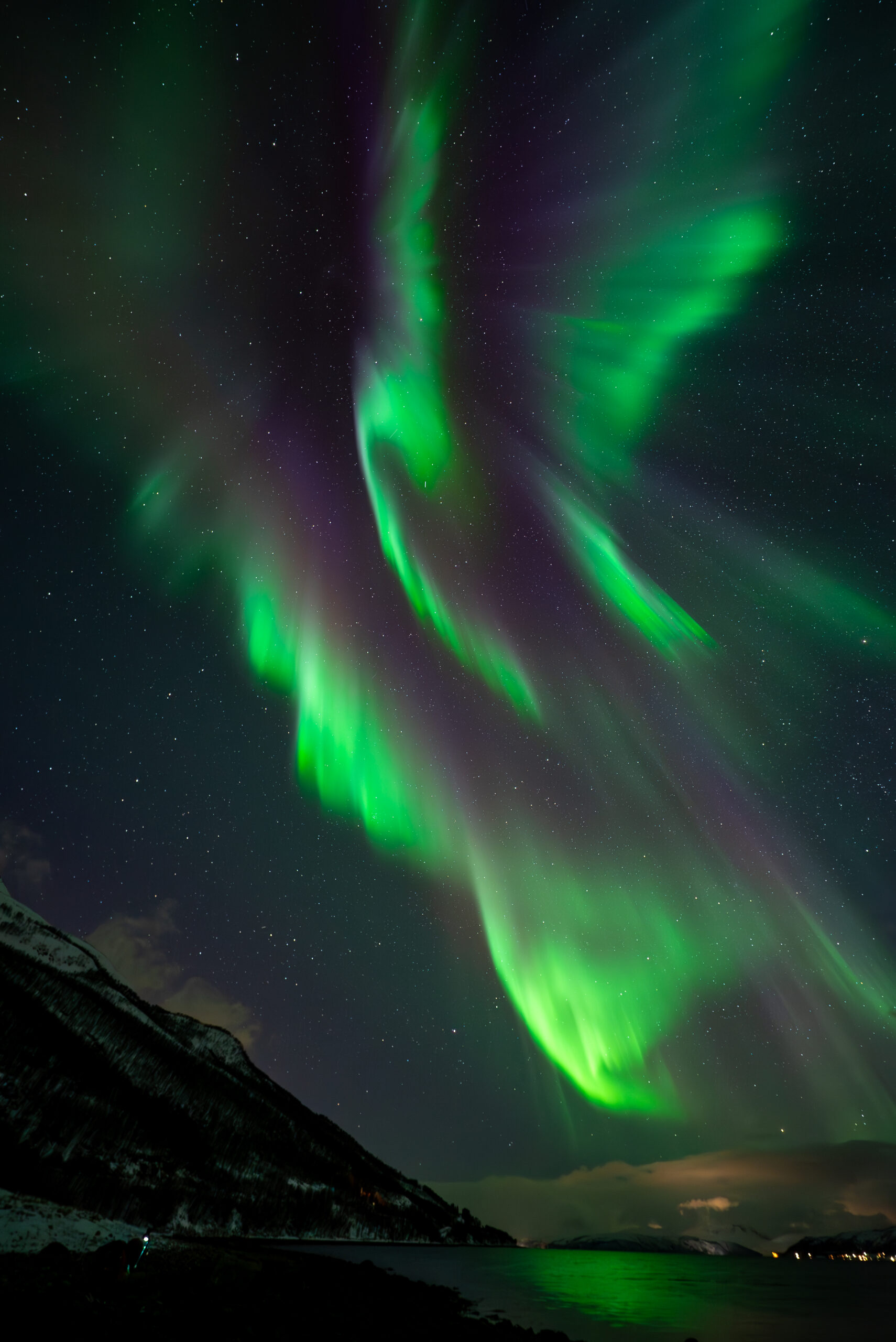 The Northern Lights, also known as a Aurora Borealis, are a spectacular light phenomenon that can be observed in the night sky. It looks like a dance of colorful lights in the form of bands or curtains. The shape and colour of the Northern Lights depend on various factors such as a temperature, atmospheric composition, solar activity and geomagnetic activity. Most commonly, we see bright green bands of light, but other colors such as red, pink, blue or purple can also appear. The Northern Lights can be imagined as dancing colorful lights in the sky. It is as if we were observing flickering, shape-shifting bands or patches. It can have different colours, such as green, red, purple or blue.